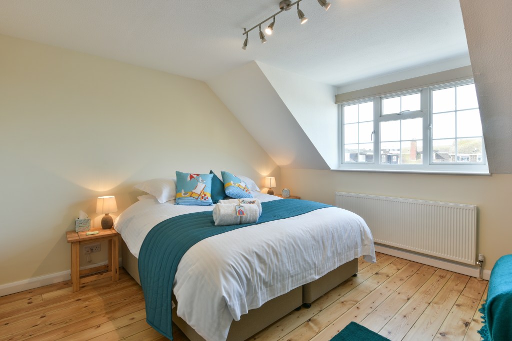 Bedroom 1 can be arranged with a 6 foot wide bed or two singles.